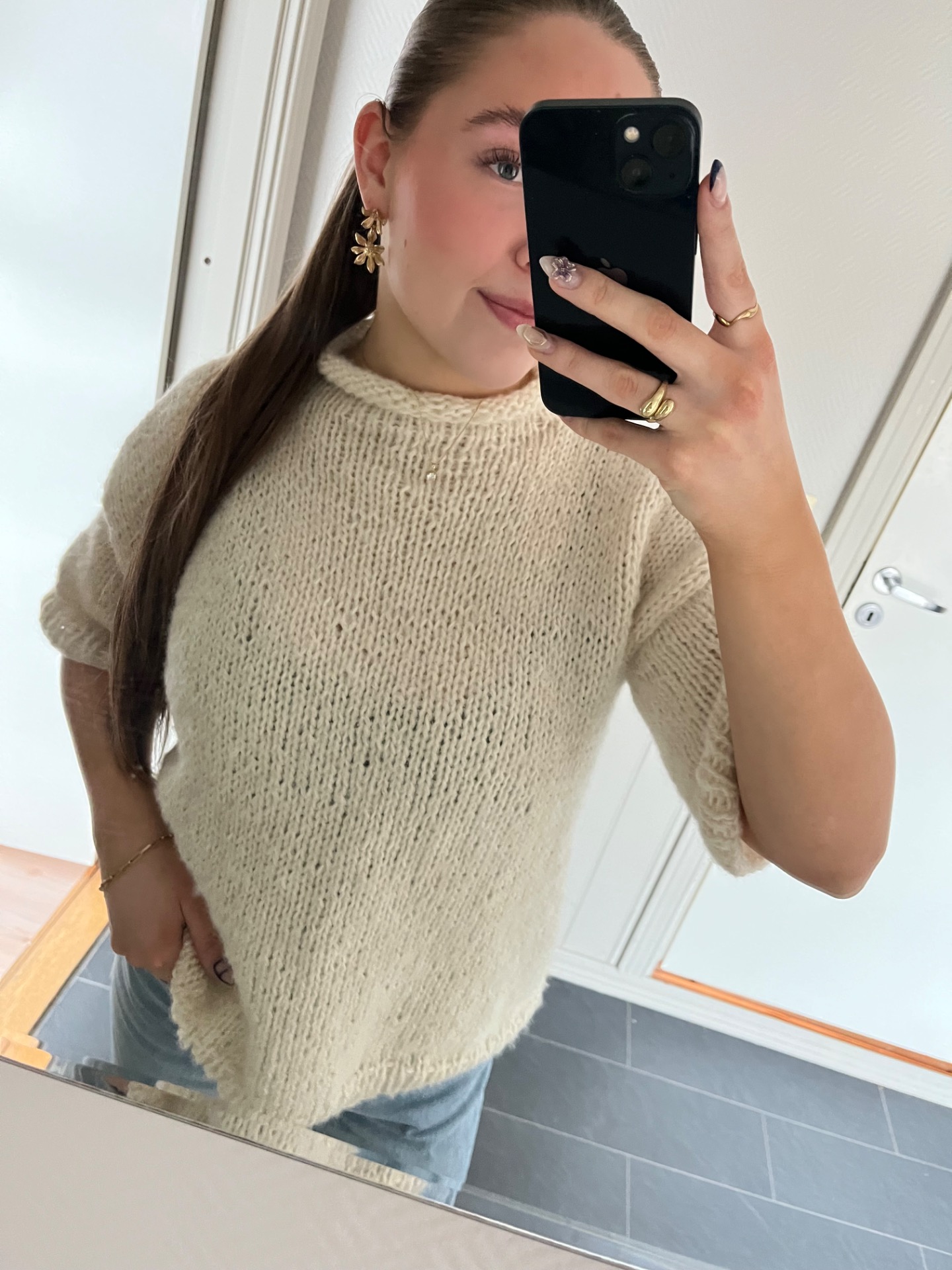 Velia tee er en kjappstrikket topp strikket på tykke pinner. Genseren strikkes nedenfra og opp hvor for og bakstykke strikkes hver for seg og skuldre strikkes sammen etter det. Halsen strikkes i glattstrikk som en forlengelse av bolen og toppen har ganske vide ermer som går til litt forbi albuen. Velia tee er svært nybegynnervenlig og perfekt for deg som ønsker et kjapt prosjekt hvor du slipper å tenke så mye.